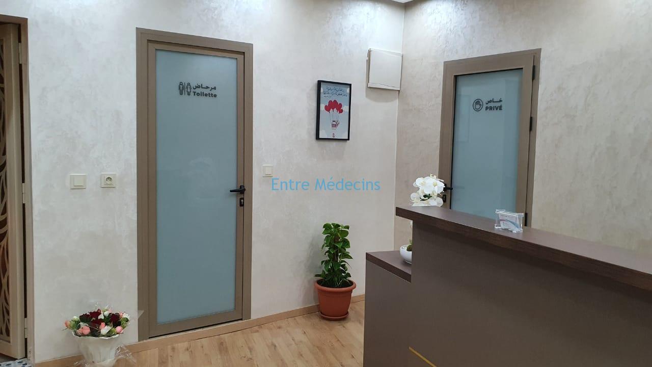 Pour regroupement familial, Je cède mon cabinet médical situé au 1er étage d’une maison R+2, au-dessous d’une auto-école, sur l’axe principal du lotissement Zarktouni (Bouakkaz-Mhamid) à Marrakech. Cabinet spacieux composé de : bureau+salle de soins+salle de repos+salle d’attente+ cuisine+toilette patients+salle de bain privée+ hall de réception, complétement rénové et bien équipé pour médecin généraliste, qui peut servir également pour médecin spécialiste (notamment gynécologue).