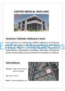 Nous mettons en location des cabinets médicaux de très haut standing dans un centre medical comprenant un Laboratoire d’Analyses Médicales et localisé sur une artère principale de l’Agdal jouissant d’une excellente visibilité.
